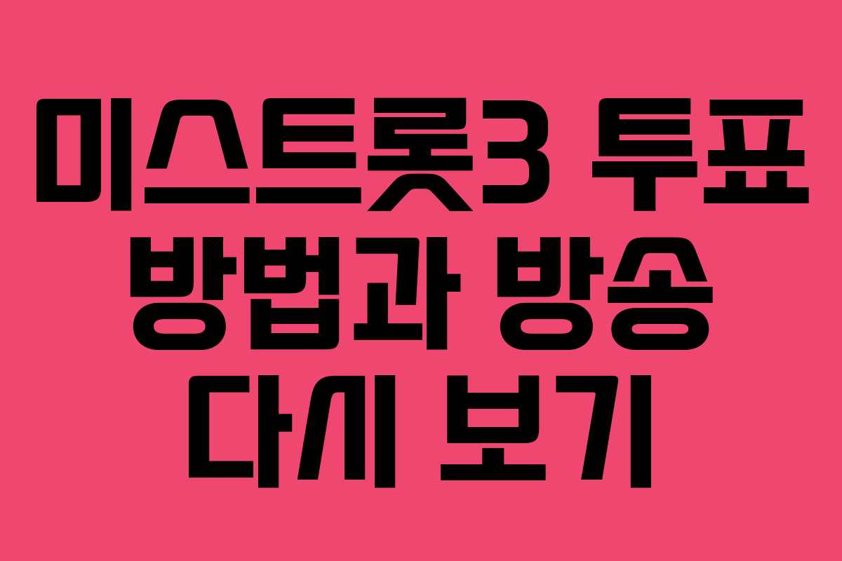 미스트롯3가 시작되면서 팬들의 응원 투표가 활발하게 진행되고 있습니다. 이 글에서는 미스트롯3의 투표 방법과 방송 다시 보기를 안내합니다.