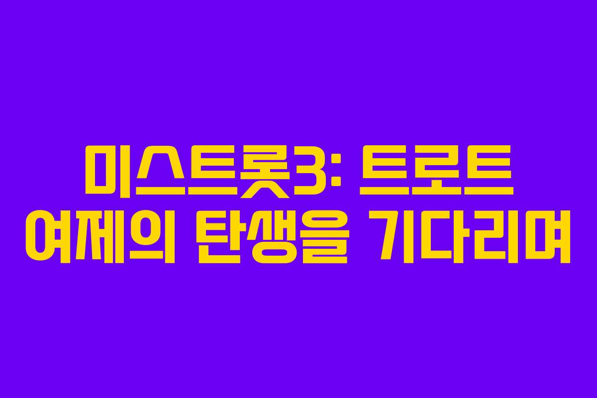 미스트롯3는 예선 통과자들이 경쟁하는 오디션 프로그램으로, 각 참가자는 자신만의 매력을 발산하며 최종 목표인 ‘조선의 셋째 딸’이 되기 위해 노력합니다. 참가자들은 8개의 부서로 나뉘어 팀 미션을 수행하며, 경연의 결과에 따라 생존 여부가 결정됩니다.
