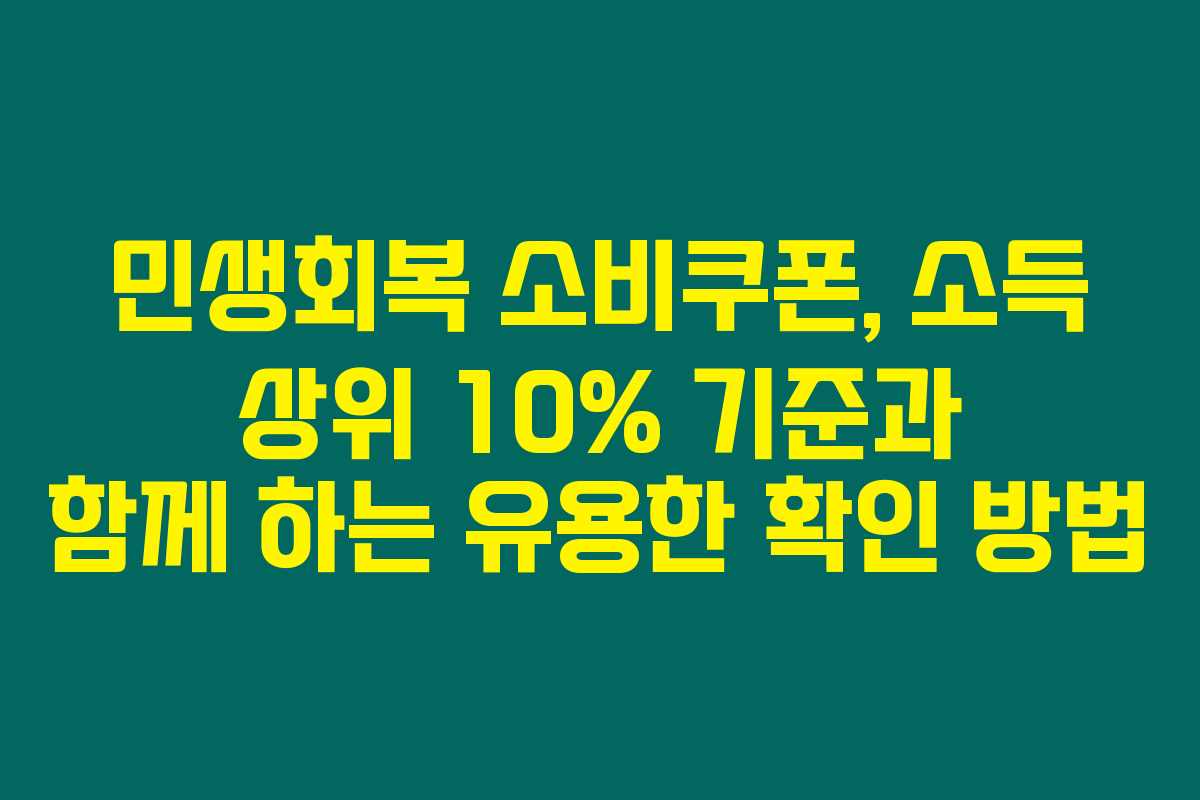 제가 직접 알아본 바로는, 정부의 민생회복 소비쿠폰 정책은 국민의 소비를 촉진하기 위한 중요한 조치입니다. 하지만 이 쿠폰은 소득 상위 10%는 제외된다는 점에서 많은 분들이 “나도 받을 수 있을까?”라는 고민을 하시더라고요. 아래를 읽어보시면 민생회복 소비쿠폰과 관련된 소득 상위 10% 기준 및 대상자 확인 방법에 대한 귀중한 정보가 담겨 있어요.