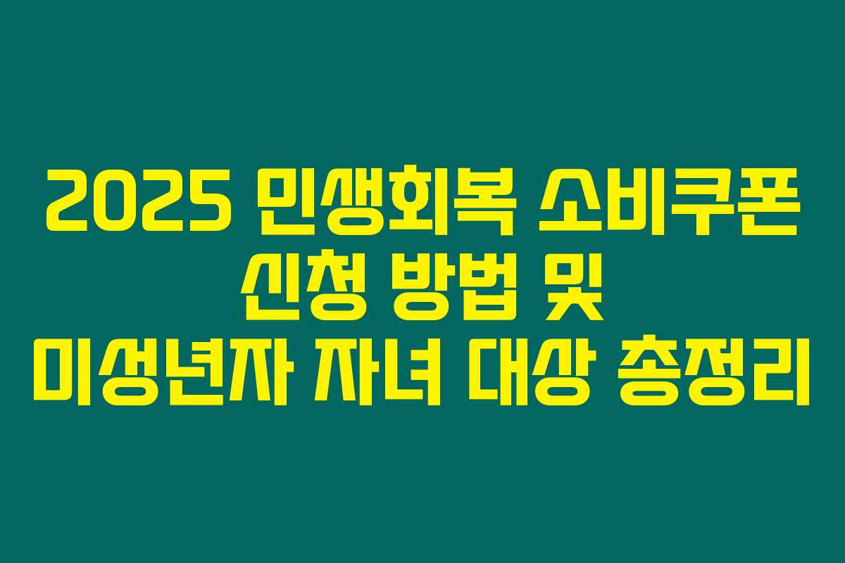민생회복 소비쿠폰을 신청하려는 분이라면 유념해야 할 정보가 정말 많습니다. 특히 미성년자인 자녀를 둔 분들이라면 여러 가지 주의사항이 필요하죠. 2025 민생회복 소비쿠폰을 신청할 수 있는 방법과 함께 중요한 정보를 아래를 읽어보시면 꼭 확인하세요. 이렇게 제대로 알아두지 않으면 신청에서부터 사용까지 많은 혼선이 생길 수 있거든요.