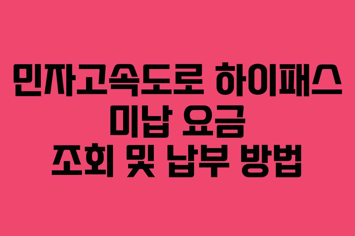 민자고속도로의 경우, 후불카드만 이용해 납부가 가능하며, 신용카드나 모바일 결제는 해당 도로의 홈페이지에서만 가능합니다. 민자고속도로의 미납 요금 조회 및 납부는 koti.re.kr에서 가능합니다.