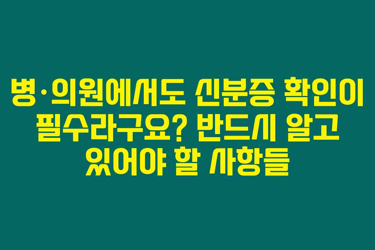 이렇게 병원에서의 신분증 확인 의무화에 대해 알아보았는데요. 여러분의 소중한 건강과 안전을 위해서는 이 제도가 꼭 필요하다는 걸 이해하셨길 바랍니다. 예방은 언제나 필요한 법이니까요! 필요할 때 언제든지 신분증을 잘 챙겨 가시기 바랍니다.