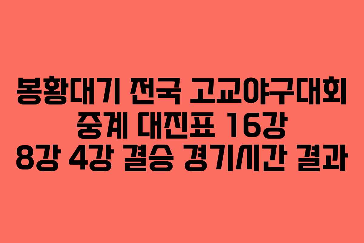 - 16강: 공식 홈페이지와 유튜브에서 실황 중계가 제공됩니다. 봉황대기 전국 고교야구대회 중계 대진표를 보며 시청 계획을 세우면 좋습니다.