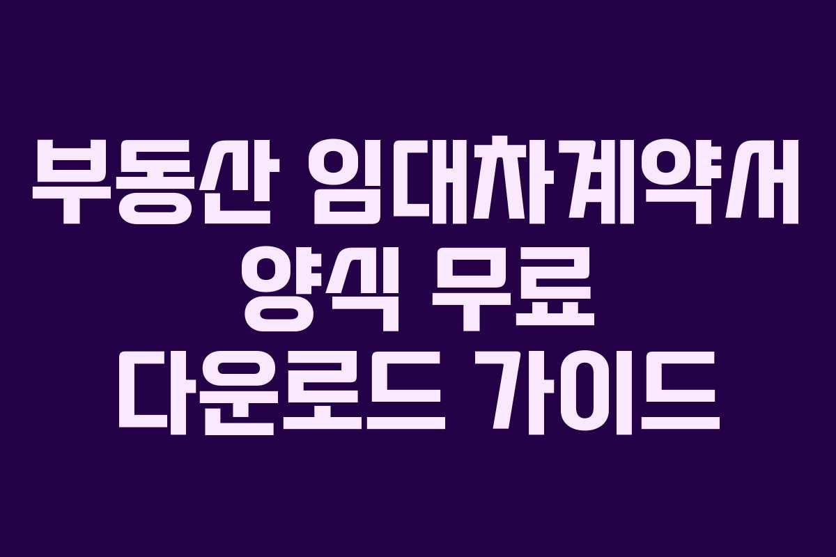 부동산 임대차계약서 양식 무료 다운로드 가이드