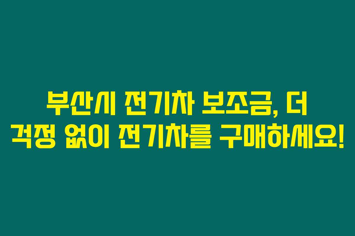 부산시 전기차 보조금은 전기차 구매를 더욱 편리하게 할 수 있는 좋은 기회랍니다. 여러분의 환경에 대한 생각과 발걸음이 함께 하길 바랍니다.