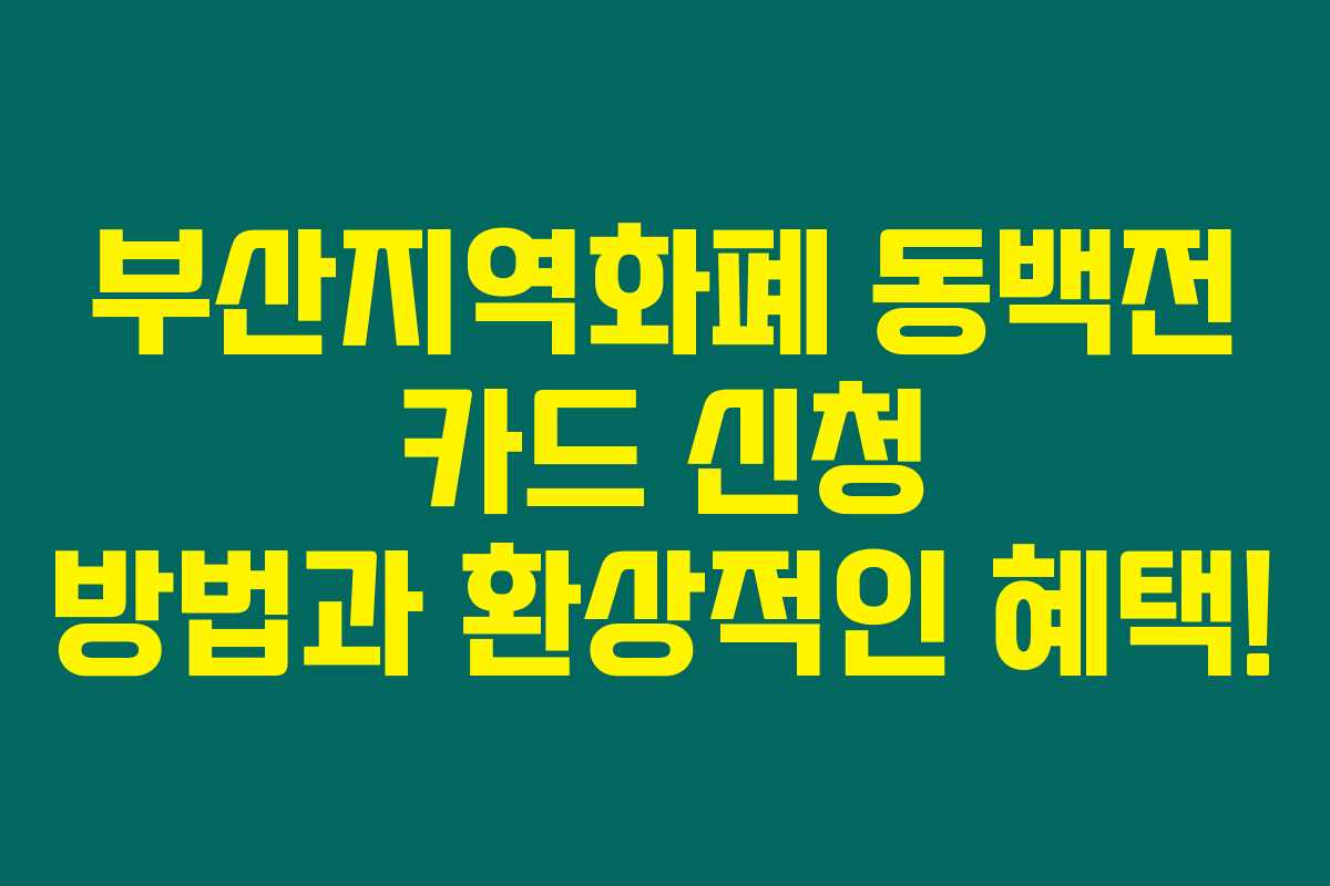 부산지역화폐 동백전 카드 신청 방법과 환상적인 혜택!