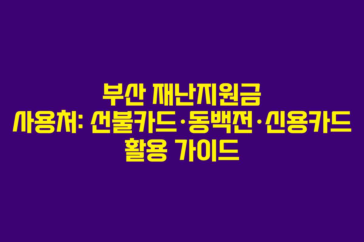부산 재난지원금 사용처: 선불카드·동백전·신용카드 활용 가이드