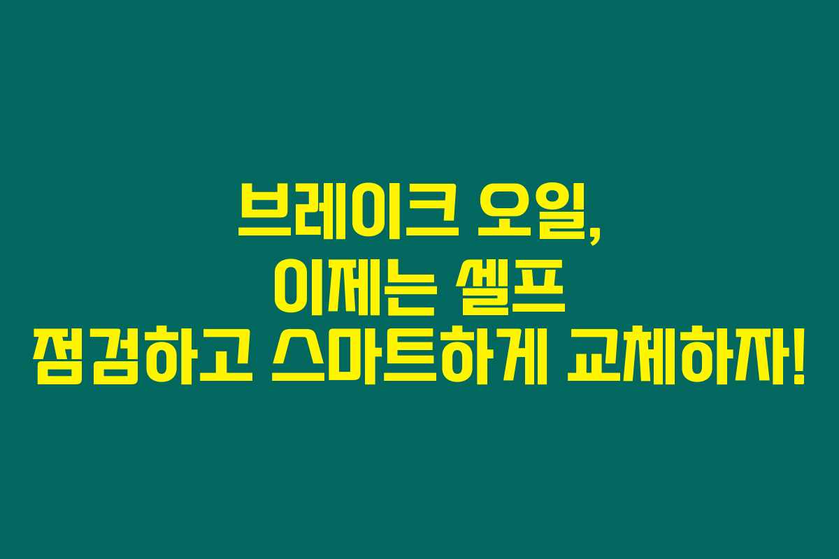 자동차를 안전하게 운전하기 위해 점검이 필수라는 걸 잊지 마세요. 브레이크 오일 관리가 정말 중요하니까, 기회가 되면 직접 점검해보세요! 수명이 다한 브레이크 오일로 인한 사고를 예방할 수 있답니다.