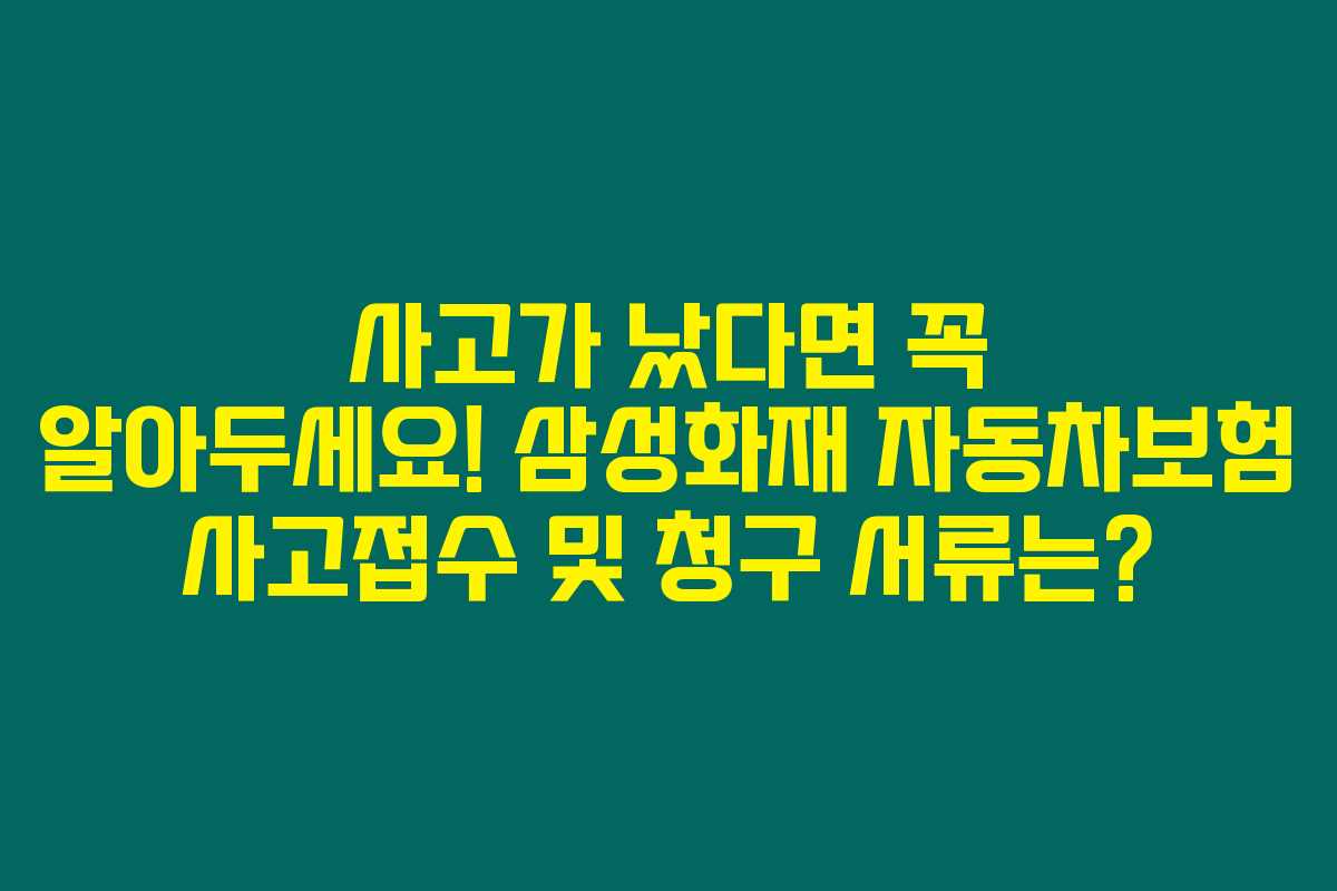 자동차 사고는 언제 어디서 발생할지 모르기에 미리 준비해두는 것이 정말 중요해요. 자동차보험 사고접수 및 청구 방법을 미리 알아두지 않았다면 당황하실 수 있어요. 삼성화재 자동차보험을 이용 중이신 분이라면 아래 내용을 통해 사고 발생 시 필요한 서류와 절차를 상세히 알아보세요.