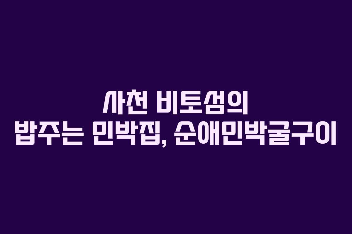 사천 비토섬에 위치한 ‘순애민박굴구이’는 1박 2식의 푸짐한 식사를 제공하는 민박집으로, 최근 KBS의 ‘6시내고향’ 프로그램에서 소개되었습니다. 이 민박집은 예약이 필수이며, 아름다운 자연 속에서 편안한 숙박과 맛있는 식사를 동시에 즐길 수 있는 곳입니다.