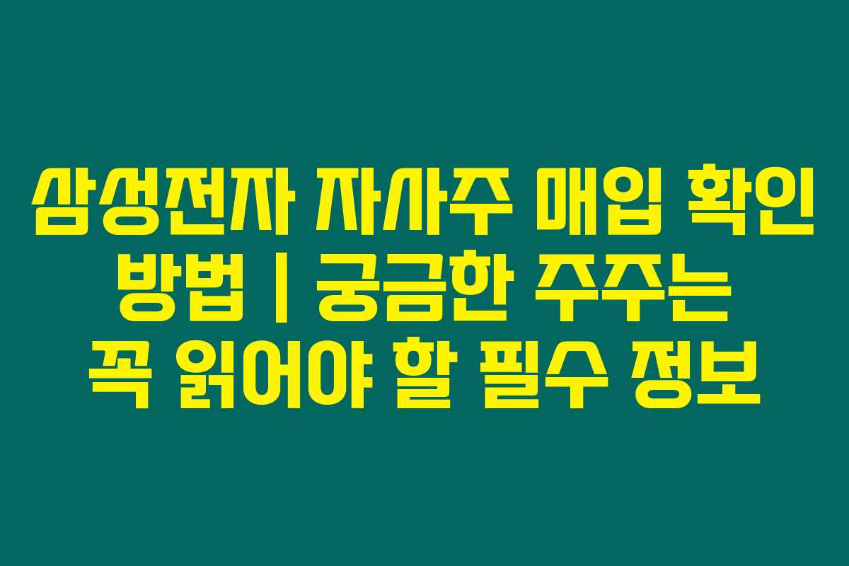 삼성전자 자사주 매입 소식은 많은 주주들에게 기쁜 소식이 될 수 있지만 주가가 왜 쉽게 상승하지 않을까요? 삼성전자의 자사주 매입 사실을 확인하는 방법을 알아보려는 주주라면 아래를 꼭 읽어보세요. 매입 계획이 공개된 후에도 주가가 변동이 없는 상황에서는 많은 이들이 궁금증을 갖게 되죠. 자사주 매입이 실제로 이루어지는지 확인할 수 있는 방법을 공유할게요.