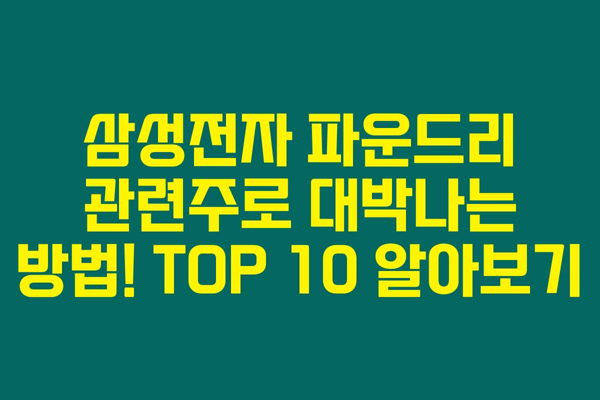 삼성전자 파운드리 관련주에 대한 정보를 찾고 있으신가요? 그렇다면 큰 손해를 보지 않기 위해서라도 반드시 알아야 할 상위 주식들에 대해 소개할게요. 삼성전자의 파운드리 사업은 날로 발전하고 있는데요, 이와 관련된 주식들을 통해 투자 수익을 극대화할 수 있는 기회를 잡아보세요. 아래를 읽어보시면 이들 관련주에 대한 깊이 있는 정보와 실제 투자에 대한 유용한 인사이트를 얻으실 수 있을 거예요.