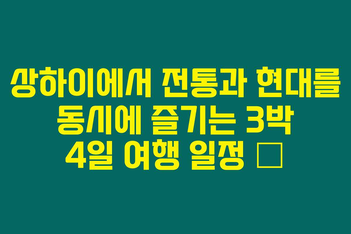 제가 직접 경험해본 결과로는, 상하이(Shanghai)는 전통과 현대가 조화롭게 어우러진 매력적인 도시입니다. 이곳에서의 3박 4일 동안의 여행 일정은 다양한 문화와 맛, 경치를 한꺼번에 경험할 수 있는 특별한 기회를 제공합니다. 아래를 읽어보시면 상하이에서의 필수 코스와 맛집, 꿀팁을 담은 여행 일정을 확인하실 수 있습니다.