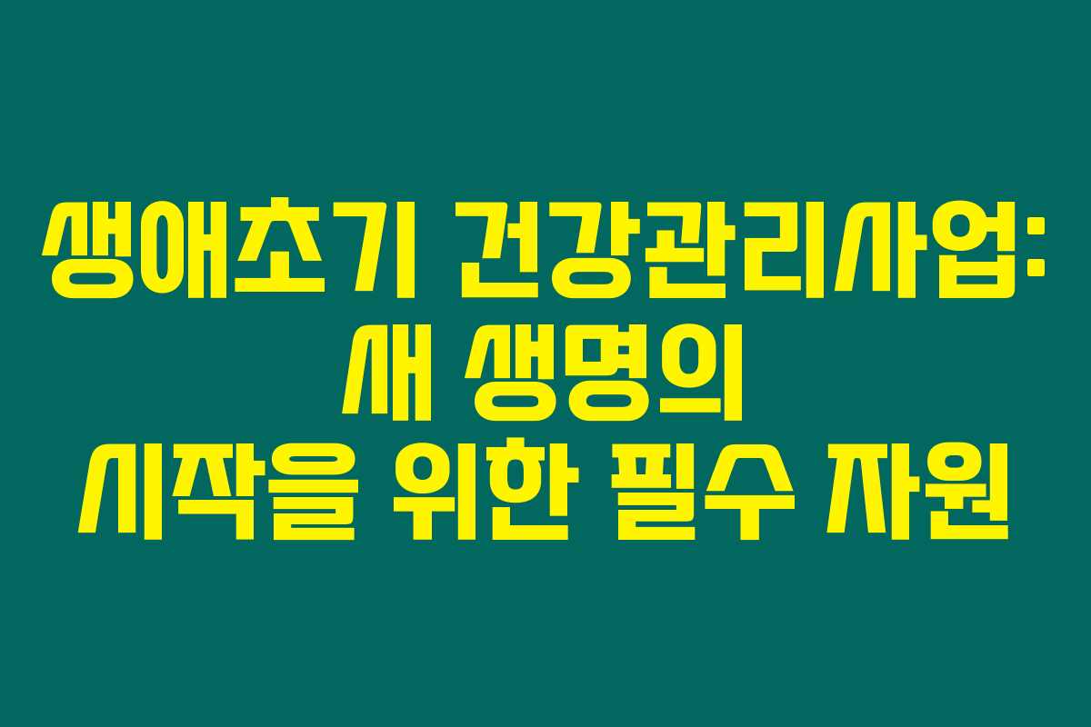 제가 직접 리서치한 바로는 생애초기 건강관리사업은 임산부와 영유아의 건강을 지원하는 데 있어 매우 중요한 기관입니다. 이 사업은 아동이 건강하게 성장할 수 있도록 다양한 프로그램과 지원을 제공하는데, 이는 장기적으로 사회 전반에도 긍정적인 영향을 미칩니다. 아래를 읽어보시면 생애초기 건강관리사업의 중요성과 필요성을 이해할 수 있을 것입니다.