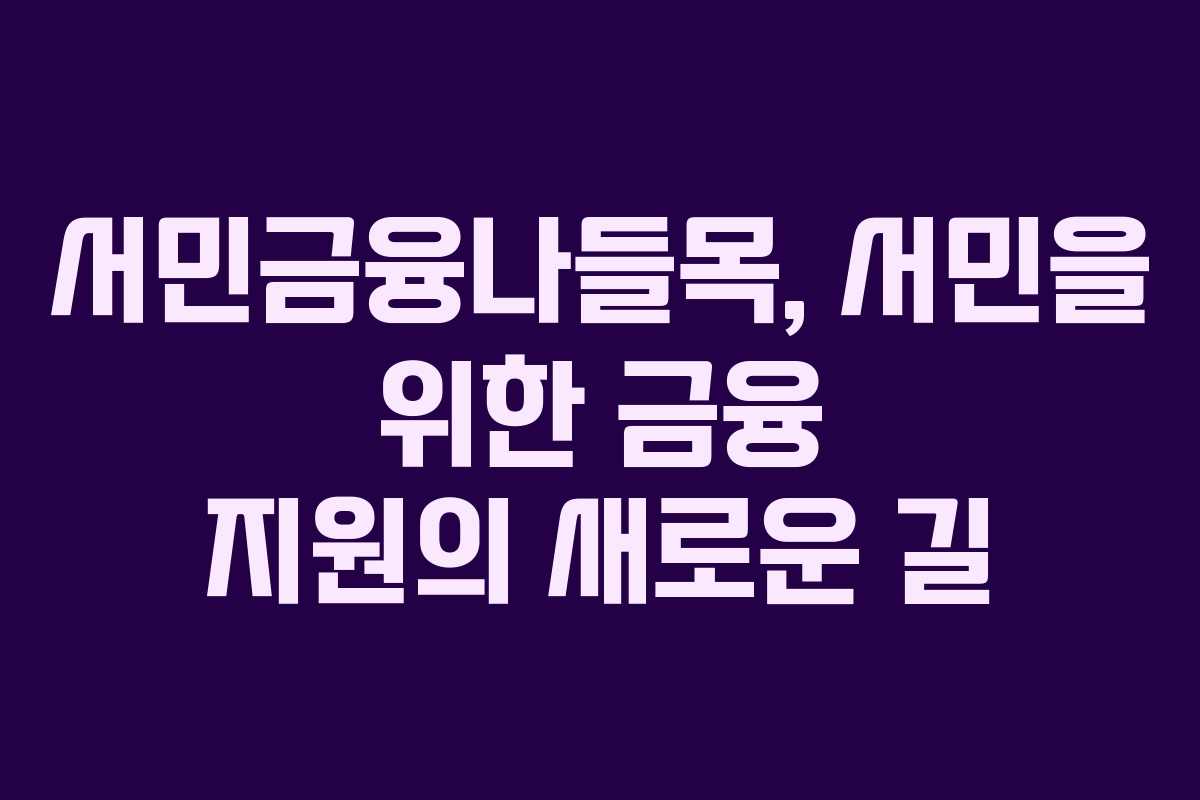 서민금융나들목, 서민을 위한 금융 지원의 새로운 길
