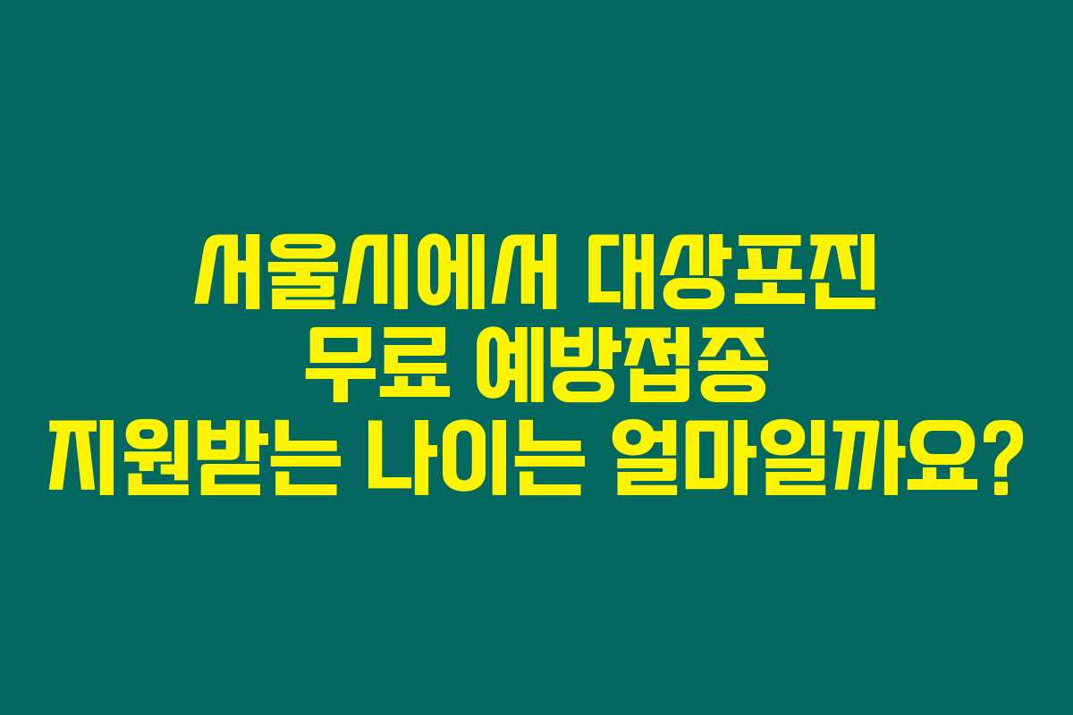서울시는 65세 이상의 어르신들을 위해 대상포진 무료 예방접종을 제공하고 있어요. 안전하고 건강한 삶을 위해 꼭 접종 받으세요!