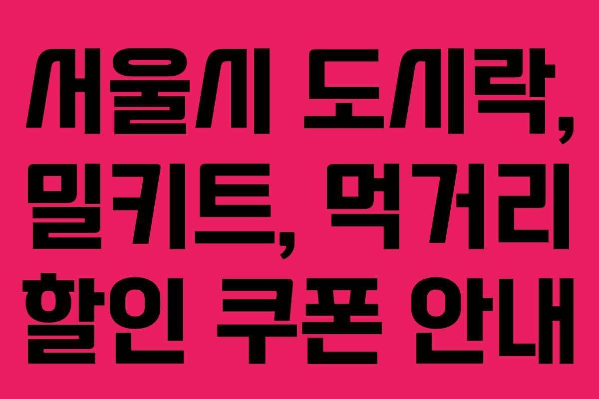 서울시는 18세 이하 자녀를 둔 가구를 위해 도시락, 밀키트, 먹거리 할인 쿠폰을 제공하고 있습니다. 이 프로그램은 서울시의 예산 지원 없이 협력사가 사회 공헌 차원에서 쿠폰 비용을 부담하는 방식으로 운영됩니다.