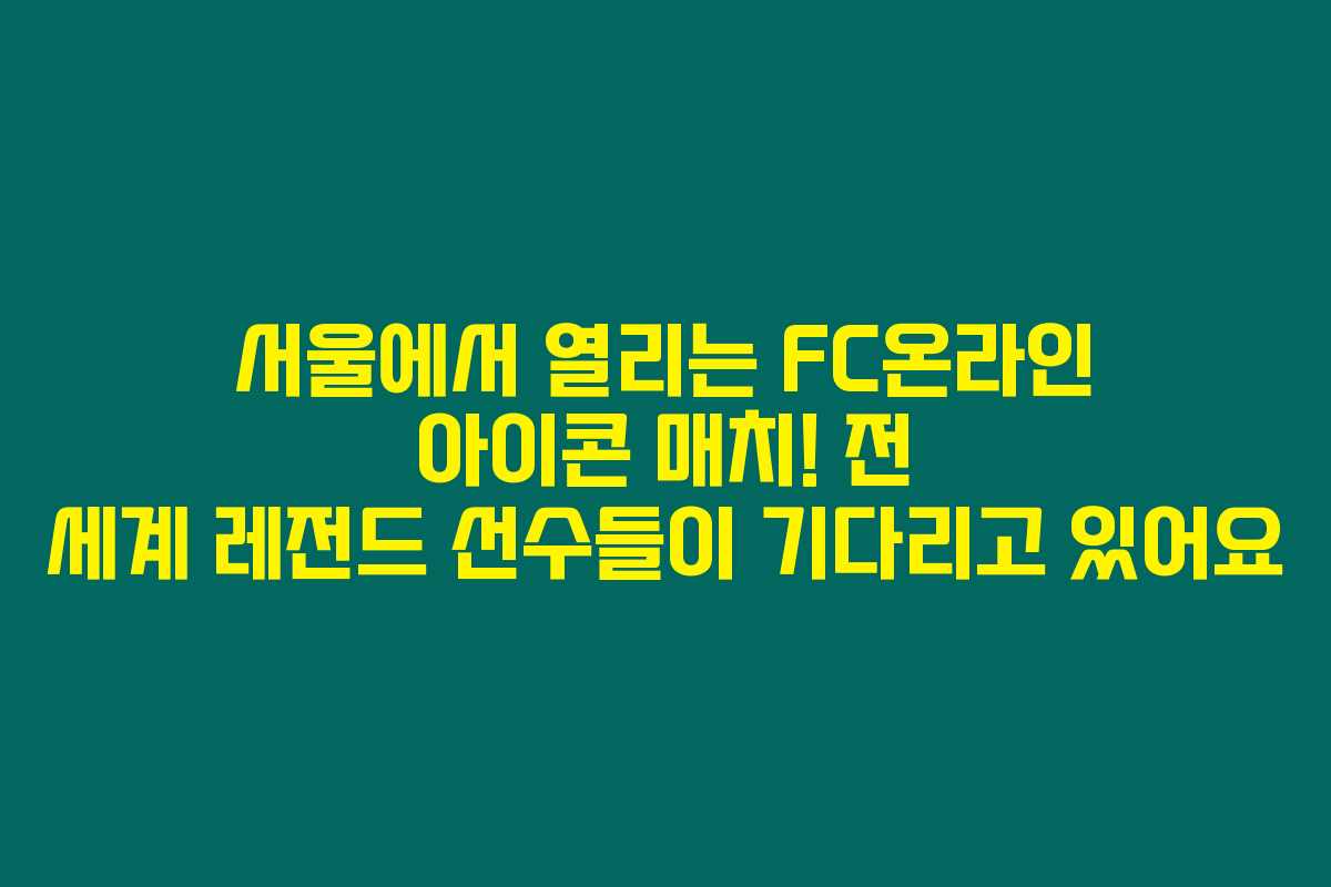 전 세계 축구 팬이라면 절대 놓칠 수 없는 소식이 있습니다. FC온라인 아이콘 매치가 서울에 등장했거든요! 드록바와 퍼디난드 같은 전설적인 선수들이 직접 경기를 펼친다니, 정말 그럴까요? 저는 이 소식에 너무 흥분해서 주저앉을 뻔했답니다. 아래를 읽어보시면 이 놀라운 이벤트에 대한 모든 정보를 확인할 수 있어요!