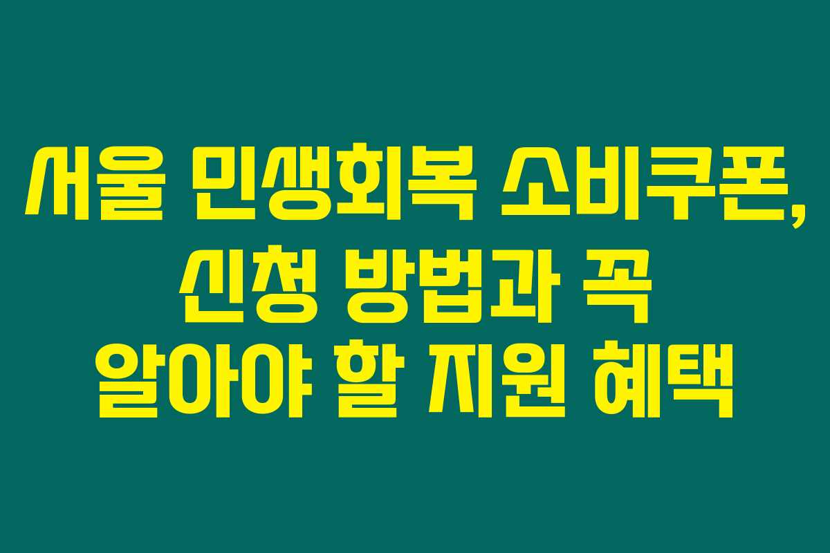 서울의 민생회복 소비쿠폰은 생활비 부담을 줄여주고, 지역 경제를 활성화하는데 큰 도움이 되는 정책입니다. 다양한 지원 혜택을 통해 더 많은 시민들이 실질적인 도움을 받을 수 있도록 신청해보세요!