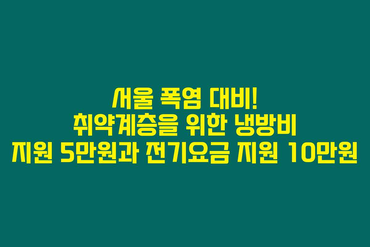 여름철 폭염에 대비해 서울시는 저소득층과 취약계층을 위해 다양한 지원 정책을 마련했어요. 냉방비 지원금으로 5만원을 받을 수 있고 전기요금도 최대 10만원까지 지원 받을 수 있어요. 그리고 무더위 쉼터를 통해 안전하게 지낼 곳도 마련되어 있으니 참고해 보세요. 올 여름은 이러한 지원으로 한층 더 안전하게 보낼 수 있지 않을까요?