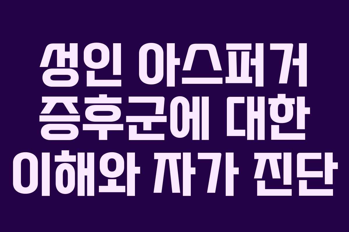 현재 아스퍼거 증후군에 대한 공식적인 진단 기준은 아직 마련되어 있지 않습니다. 일반적으로 자폐 스펙트럼 장애는 어린 시절에 진단되며, 성인의 경우 심리 상담을 통한 사회적 상호작용과 일상생활에서의 불편함을 평가하여 진단합니다.