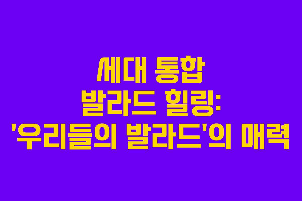 세대 간의 간극이 커지는 현대 사회에서, 음악은 사람들을 연결하는 중요한 매개체가 됩니다. 발라드는 부모 세대와 자식 세대의 플레이리스트를 공유하면서, 서로의 감정을 이해할 수 있는 기회를 제공합니다.