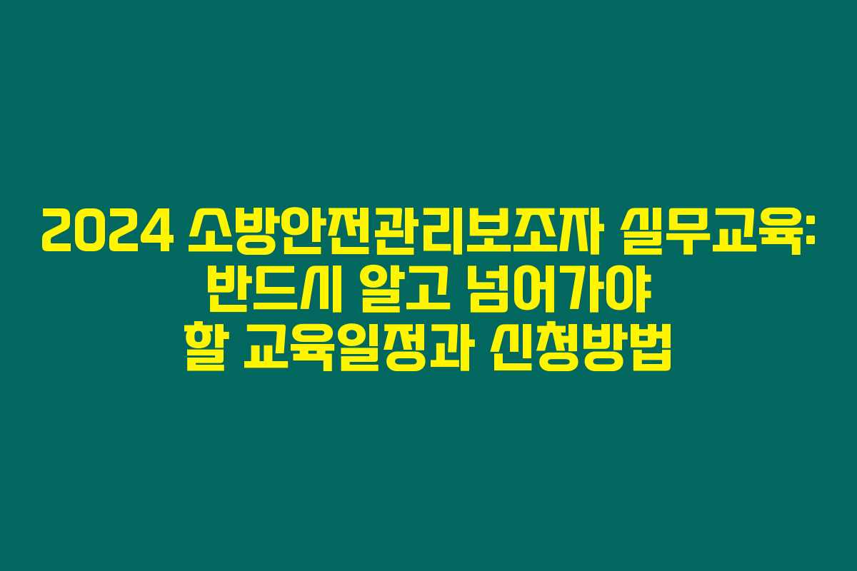 2024년도 소방안전관리보조자를 위한 실무교육은 모든 소방안전관리보조자에게 필수입니다. 교육 미이수 시, 무려 50만원의 과태료가 부과될 수 있으니 주의가 필요하죠. 아래를 읽어보시면, 소방안전관리보조자 실무교육의 신청 방법과 교육 일정, 그리고 미이수 시 과태료에 대해 살펴보겠습니다.