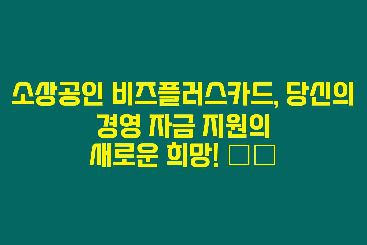 소상공인 여러분, 비즈플러스카드는 최대 1천만 원의 혜택을 무이자 조건으로 제공받을 수 있는 매우 유용한 경영 지원 도구입니다. 다양한 조건을 빠르게 충족하고 빠른 신청을 통해 부족한 자금을 보충해 보세요! 정부의 지원을 통해 smarter한 경영이 가능하니, 꼭 활용해 보시기 바랍니다. 🙌
