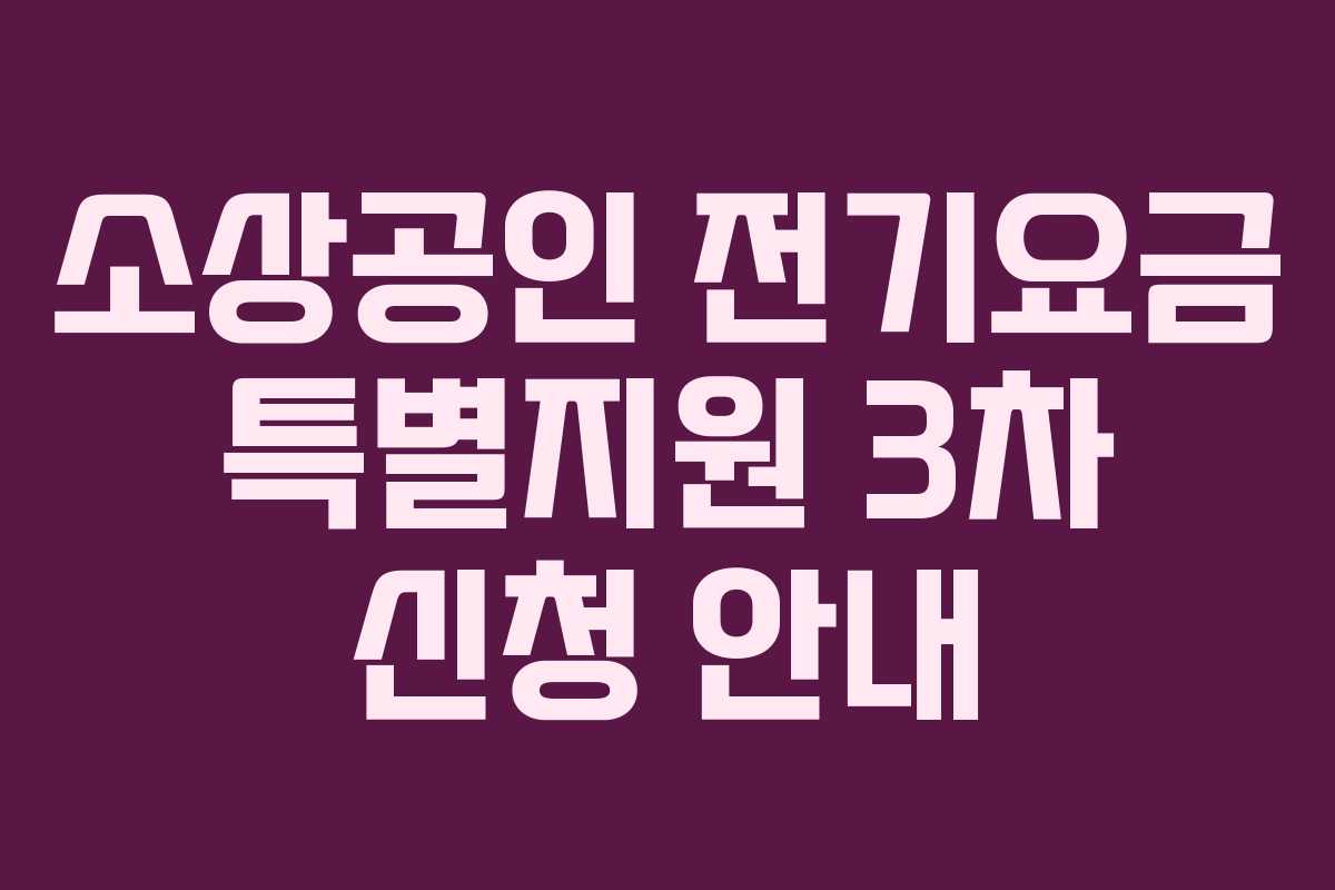 소상공인 전기요금 특별지원 제3차 신청을 통해 많은 소상공인들이 혜택을 받을 수 있기를 바랍니다. 지원 예산이 소진되기 전에 빠르게 신청하셔서 필요한 도움을 받으시기 바랍니다.