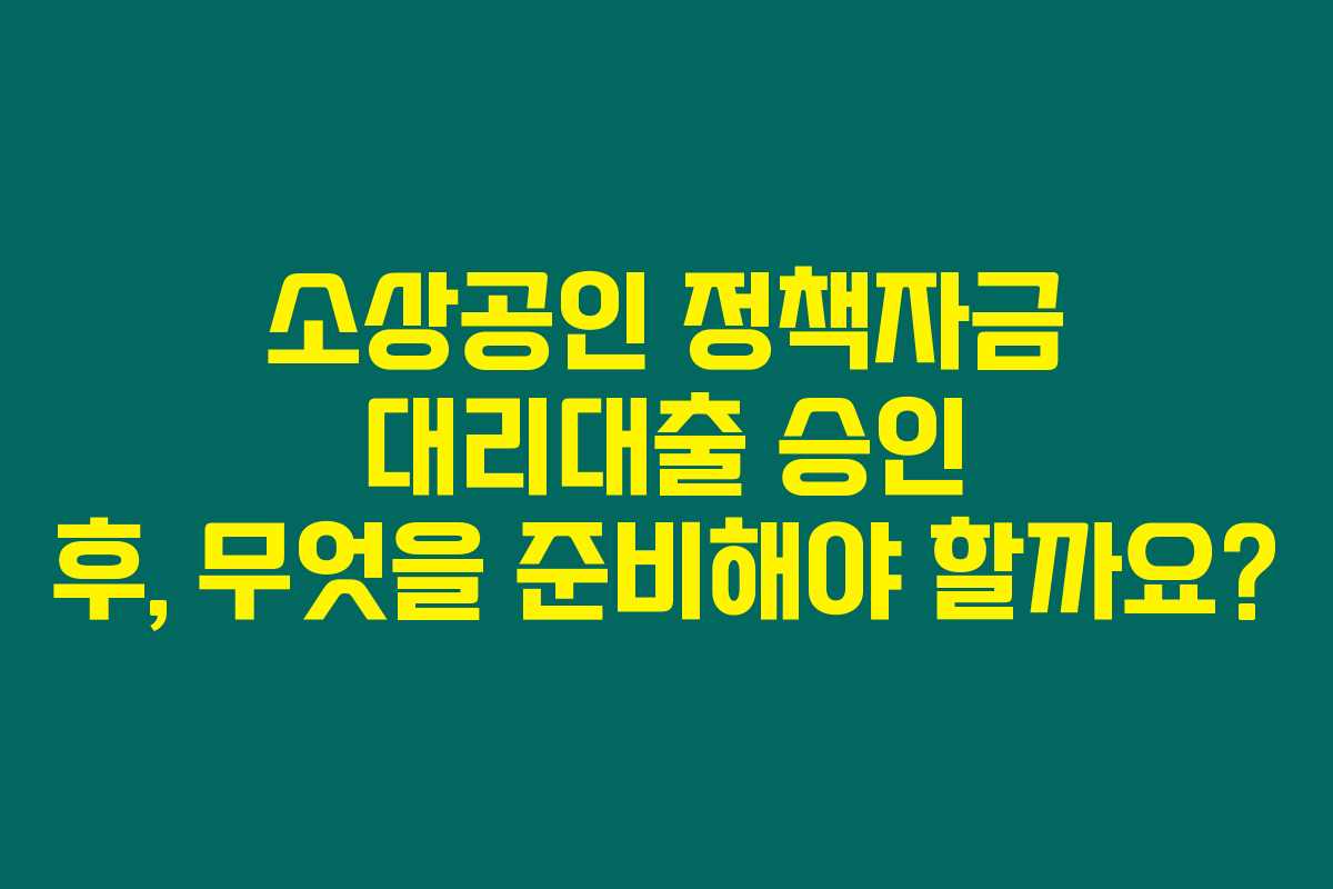 제가 알아본 바로는, 소상공인 정책자금 대리대출 승인 후에는 여러 가지 중요한 절차를 거쳐야 입금이 이루어지는데요. 대출 신청 후 서류 심사와 보증서 발급 등의 과정이 포함되어 있어, 이 모든 것이 완료되기까지 시간이 소요됩니다. 아래를 읽어보시면, 대리대출 승인 후 필요한 절차와 주의사항에 대해 상세히 알 수 있을 거예요.