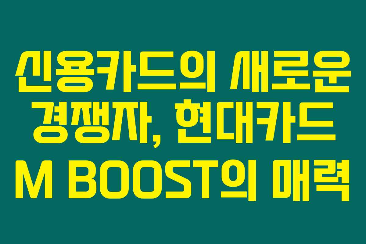 제가 직접 경험해본 결과로는 신용카드 선택 시 중요한 요소는 카드의 혜택과 편리함입니다. 많은 사람들이 신용카드를 사용하지만, 정작 어떤 카드가 나에게 맞는지에 대한 고민을 많이 하는데요. 아래를 읽어보시면 현대카드 M BOOST의 특징과 혜택에 대해 자세히 알 수 있을 거예요.