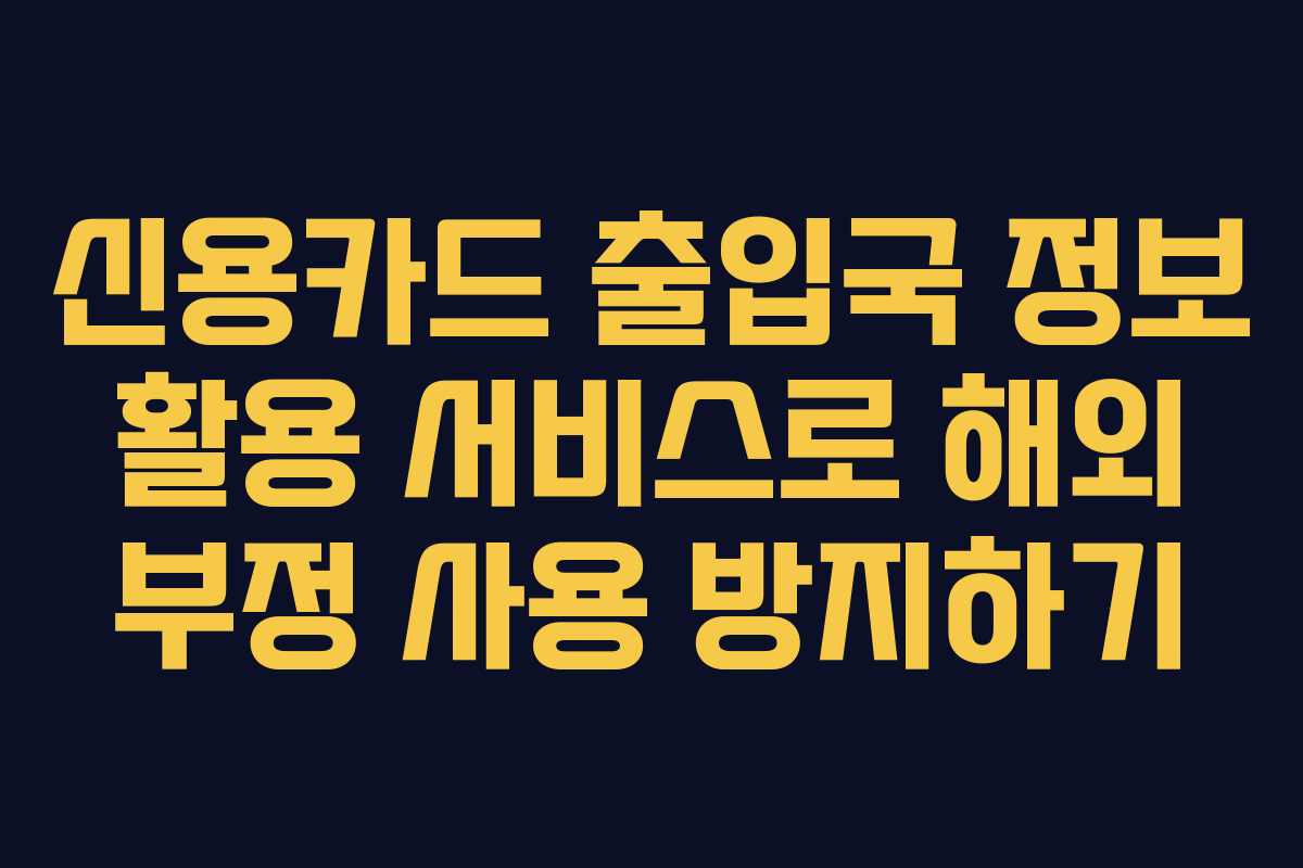 해외 여행 시 신용카드 정보를 안전하게 관리하는 것은 매우 중요합니다. 카드가 복제되거나 부정사용되는 사고를 예방하기 위해, 각 신용카드사에서는 다양한 서비스를 무료로 제공하고 있습니다. 이번 글에서는 신용카드 출입국 정보 활용 동의 서비스와 관련된 내용을 자세히 살펴보겠습니다.