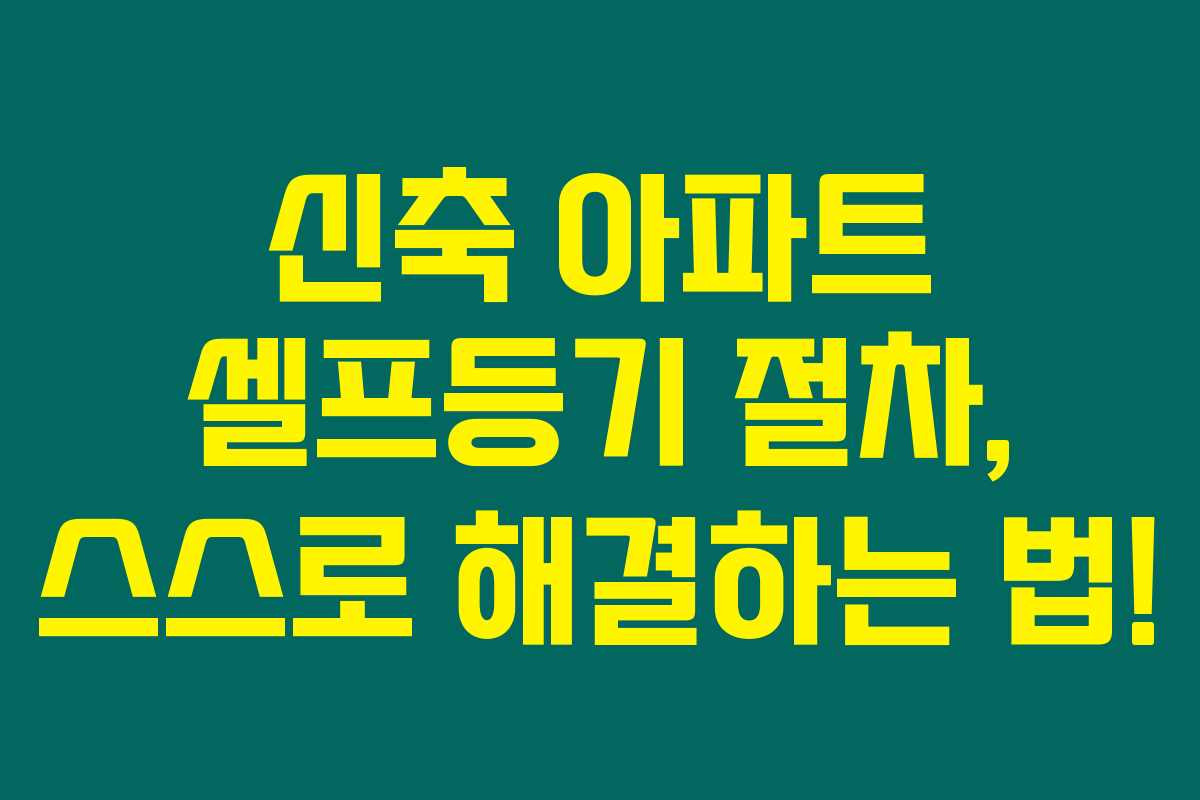 셀프등기는 수수료를 절감할 수 있는 좋은 방법이에요. 제가 직접 체크해본 바로는, 신축 아파트의 셀프등기 절차는 다음과 같은 단계로 나뉘어요.