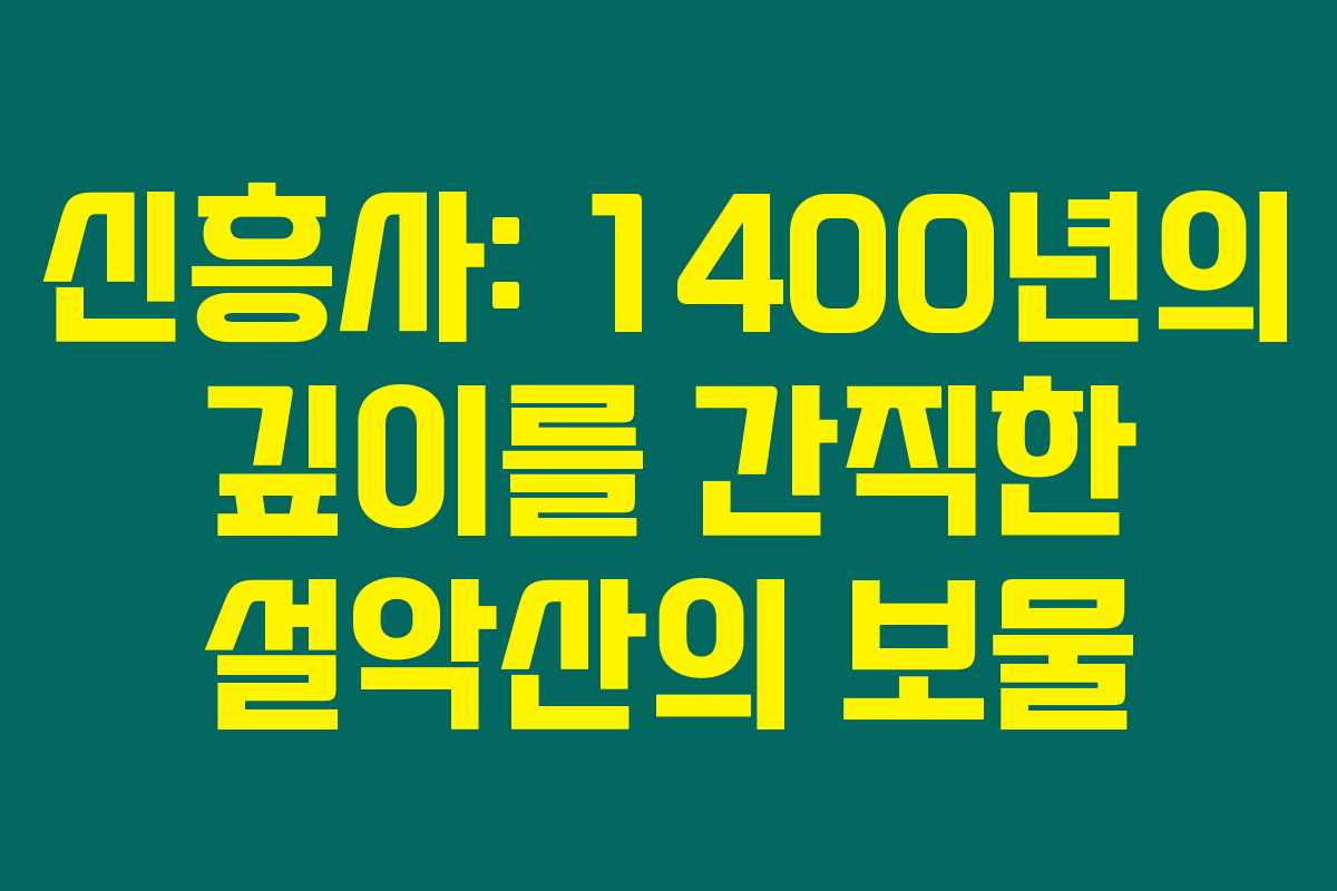 결국, 신흥사는 역사와 자연, 그리고 그 속에 담긴 사람의 마음이 하나로 어우러지는 특별한 장소랍니다. 꼭 한번 방문해보세요!