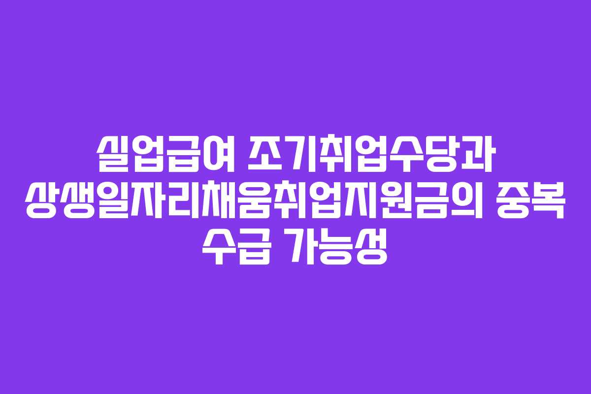 - 조기취업수당과 상생일자리채움취업지원금의 중복 수급 가능 여부