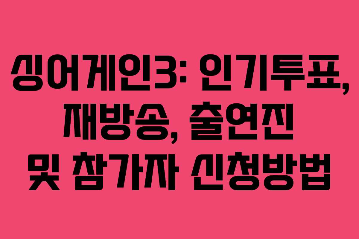 싱어게인3는 무명가수전의 인기 있는 시즌으로, 많은 이들의 기대를 모으고 있습니다. 이번 글에서는 싱어게인3의 인기투표 방법, 참가자 신청 방법, 방송 정보 등을 자세히 알아보겠습니다.