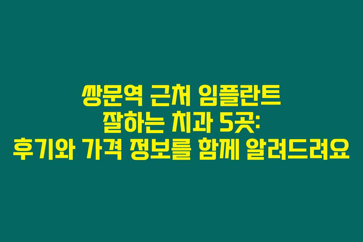 제가 직접 경험해본 바로는 건강한 치아는 매우 중요한 요소입니다. 특히 임플란트는 잃어버린 치아를 매우 자연스럽게 대체할 수 있는 방법으로 많은 사람들이 선호하고 있어요. 도봉구 쌍문동 쌍문역 주변에는 임플란트를 잘하는 치과들이 여러 군데 있답니다. 가격대와 실제 환자들의 후기를 고려해볼 때, 잘 선택하는 것이 중요하더라고요. 아래를 읽어보시면 쌍문역 인근에서 임플란트 시술을 고려하시는 분들께 추천드릴 만한 치과 5곳과 그에 대한 정보, 후기 및 가격대를 정리해 놓았습니다.