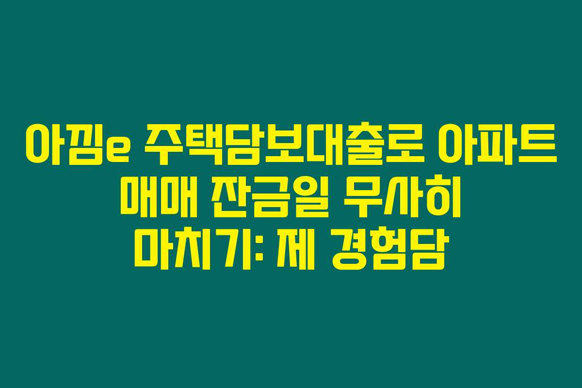 제가 알아본 바로는 아파트 매매 잔금일에 아낌e 보금자리론 주택담보대출을 실행하고 바로 진행할 때 긴장감이 넘치는 과정이 많습니다. 하지만 경험적으로 필요한 서류와 과정을 잘 이해하고 준비하면 큰 도움을 받을 수 있답니다. 아래를 읽어보시면 잔금일 당일의 실행 과정과 유의할 점에 대해 자세히 알 수 있습니다.