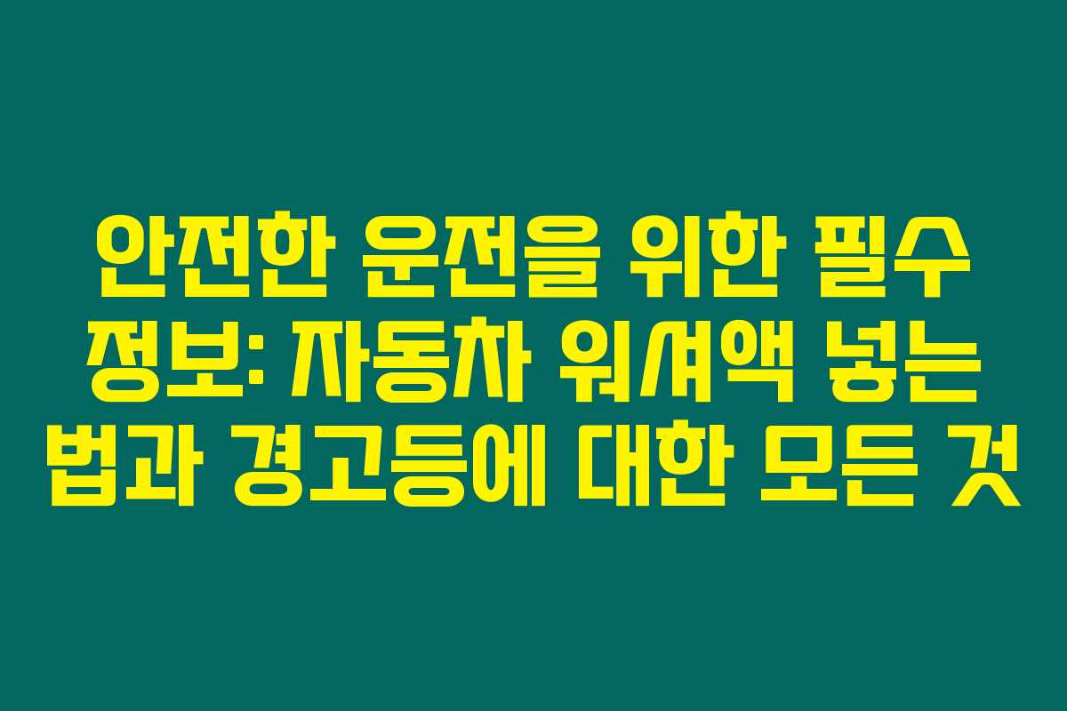 제가 직접 체크해본 바로는, 많은 운전자가 자동차의 워셔액 관리 소홀로 인해 안전운전의 위협을 느끼곤 합니다. 자동차의 워셔액은 단순한 소모품 같지만, 시야 확보를 위해 필수적이죠. 아래를 읽어보시면, 자동차 워셔액에 대한 기본 상식과 넣는 방법, 워셔액 경고등에 대해 알찬 정보를 얻으실 수 있어요!