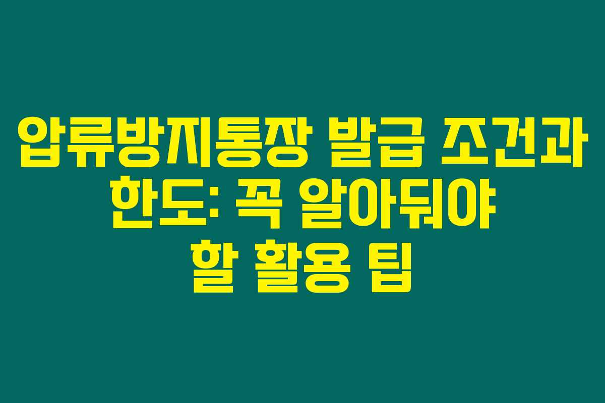 압류방지통장 발급 조건과 한도: 꼭 알아둬야 할 활용 팁