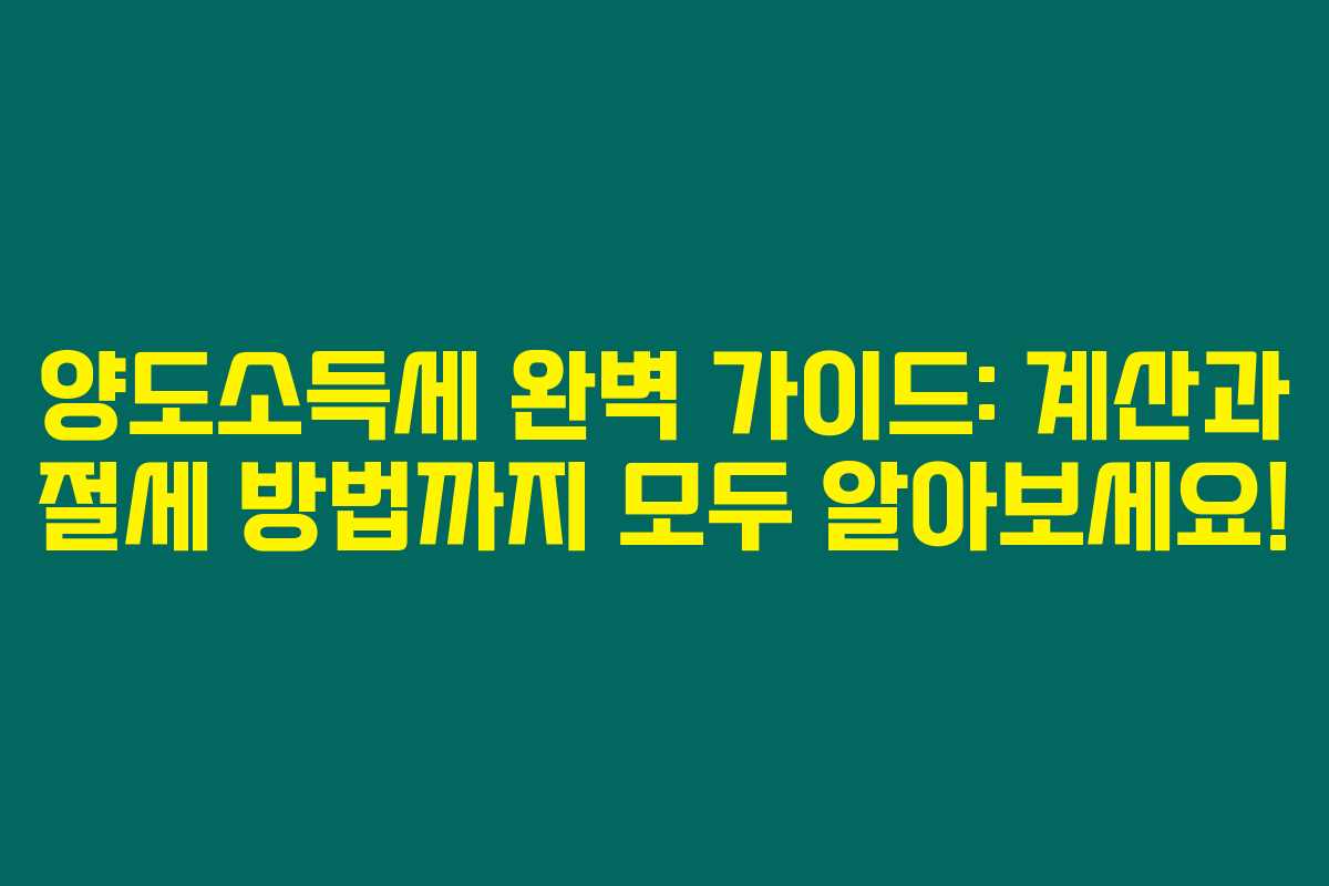 제가 직접 경험해본 결과로는, 양도소득세는 주택 매매 시 꼭 고민해야 할 세금입니다. 주택의 보유 기간과 양도 횟수, 보유 주택 개수에 따라 세율이 달라지기 때문에 미리 확인하고 준비하는 것이 중요하답니다. 아래를 읽어보시면, 양도소득세의 계산 방법과 절세 팁을 이해하는 데 큰 도움이 될 거예요.