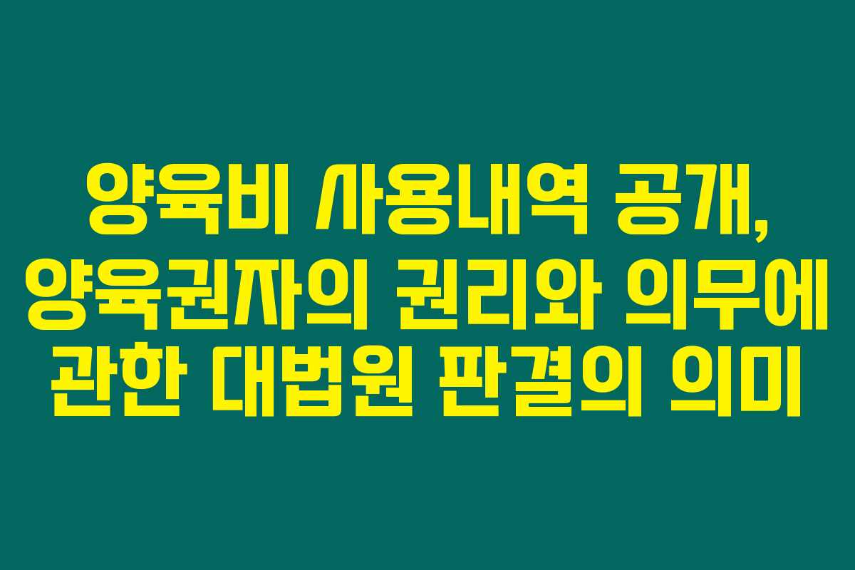 제가 직접 경험해본 결과로는, 양육비와 관련된 부모 간의 분쟁은 항상 큰 이슈가 되어왔어요. 특히 양육비의 사용 및 관리에 관한 문제에서는 양육권자의 의무와 권리에 대한 명확한 이해가 필요합니다. 아래를 읽어보시면, 대법원 판결의 핵심 내용과 그 의미를 자세히 알아볼 수 있을 거에요.
