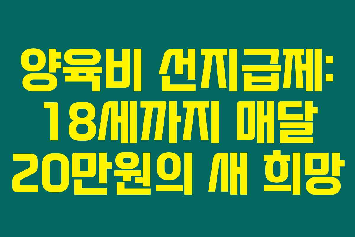 양육비 선지급제: 18세까지 매달 20만원의 새 희망