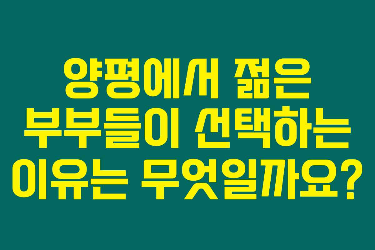 결론적으로, 양평은 젊은 부부가 안정적인 삶을 추구할 수 있는 이상적인 선택지입니다. 대중교통의 발달과 자연 환경 그리고 교육 환경이 조화를 이루며, 가성비 좋은 주택 투자로 안정적인 경제를 보장할 수 있어요. 잠시라도 고민하고 계시다면, 고려해보시는 걸 추천드려요.