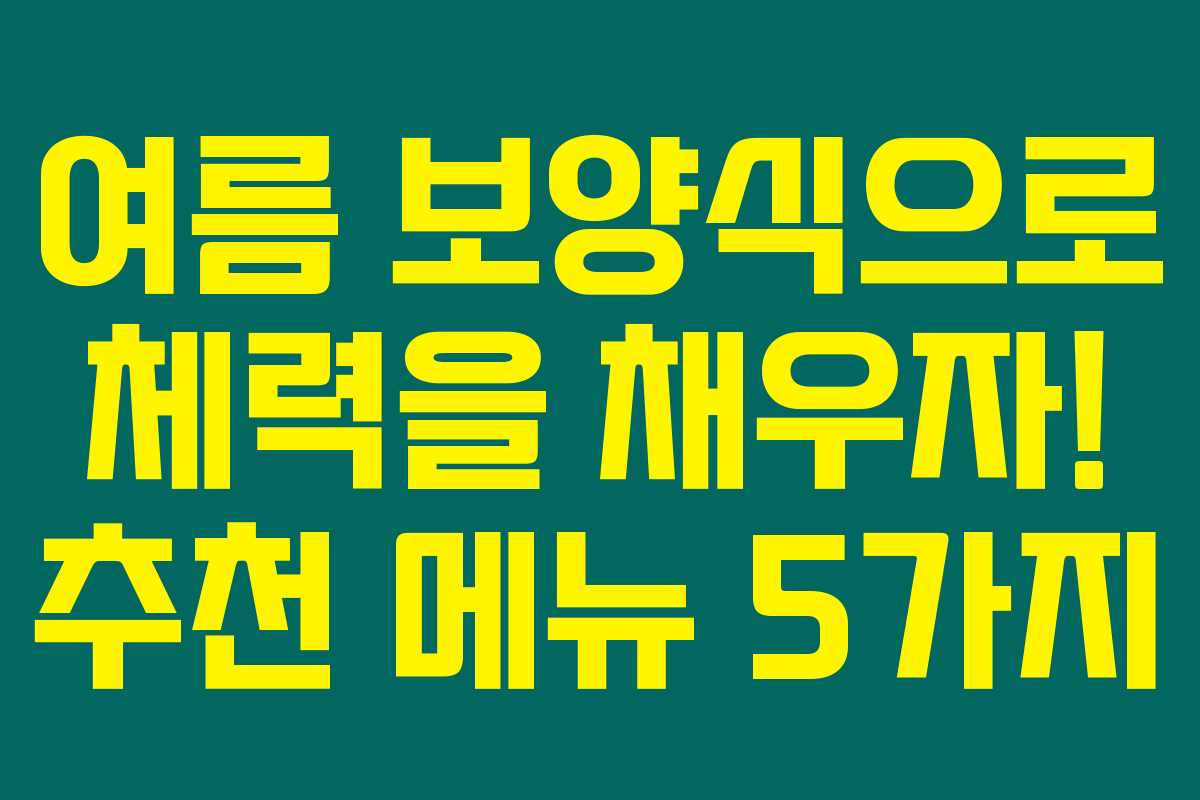 제가 알아본 바로는, 여름철이 되면 더위로 인해 체력이 빠르게 소진되는 경우가 많아요. 그래서 우리는 기력을 보충해 줄 수 있는 여름 보양식을 찾기 위해 고민하게 되죠. 저도 이번 여름 더위로 힘이 빠진 가운데, 여러 가지 여름 보양식들을 조사해봤답니다. 아래를 읽어보시면 여름철에 효과적인 보양식 다섯 가지를 소개드릴게요!