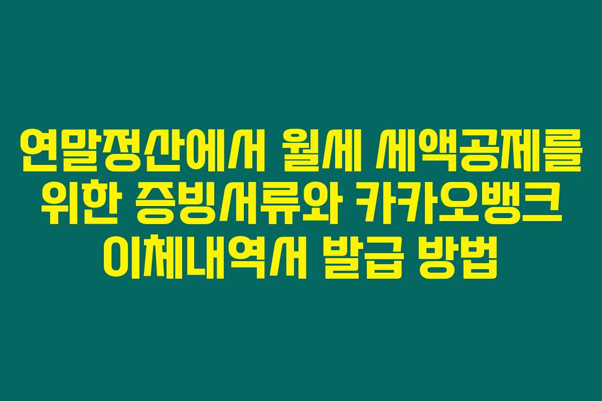 연말정산에서 절세를 도와주는 중요한 방법 중 하나는 바로 월세 세액공제입니다. 이 공제를 받기 위해서는 반드시 필요한 증빙서류가 있는데요, 여러분께서 발급 방법을 정확히 알고 준비한다면 더 많은 금액을 환급받으실 수 있답니다. 아래를 읽어보시면 연말정산 월세 세액공제를 위한 증빙서류와 카카오뱅크 이체내역서 발급 방법에 대해 자세히 안내드릴게요.