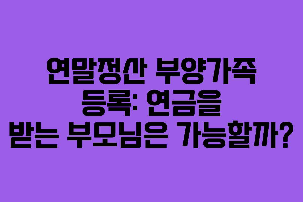 연말정산 시즌이 다가오면서 많은 직장인들이 준비에 나서고 있습니다. 특히 부양가족과 관련한 공제 항목은 매년 많은 이들이 혼란을 겪는 부분입니다. 부모님이 연금을 받으신다면 과연 부양가족으로 등록할 수 있을까요? 이와 관련된 정보를 정리해 보았습니다.