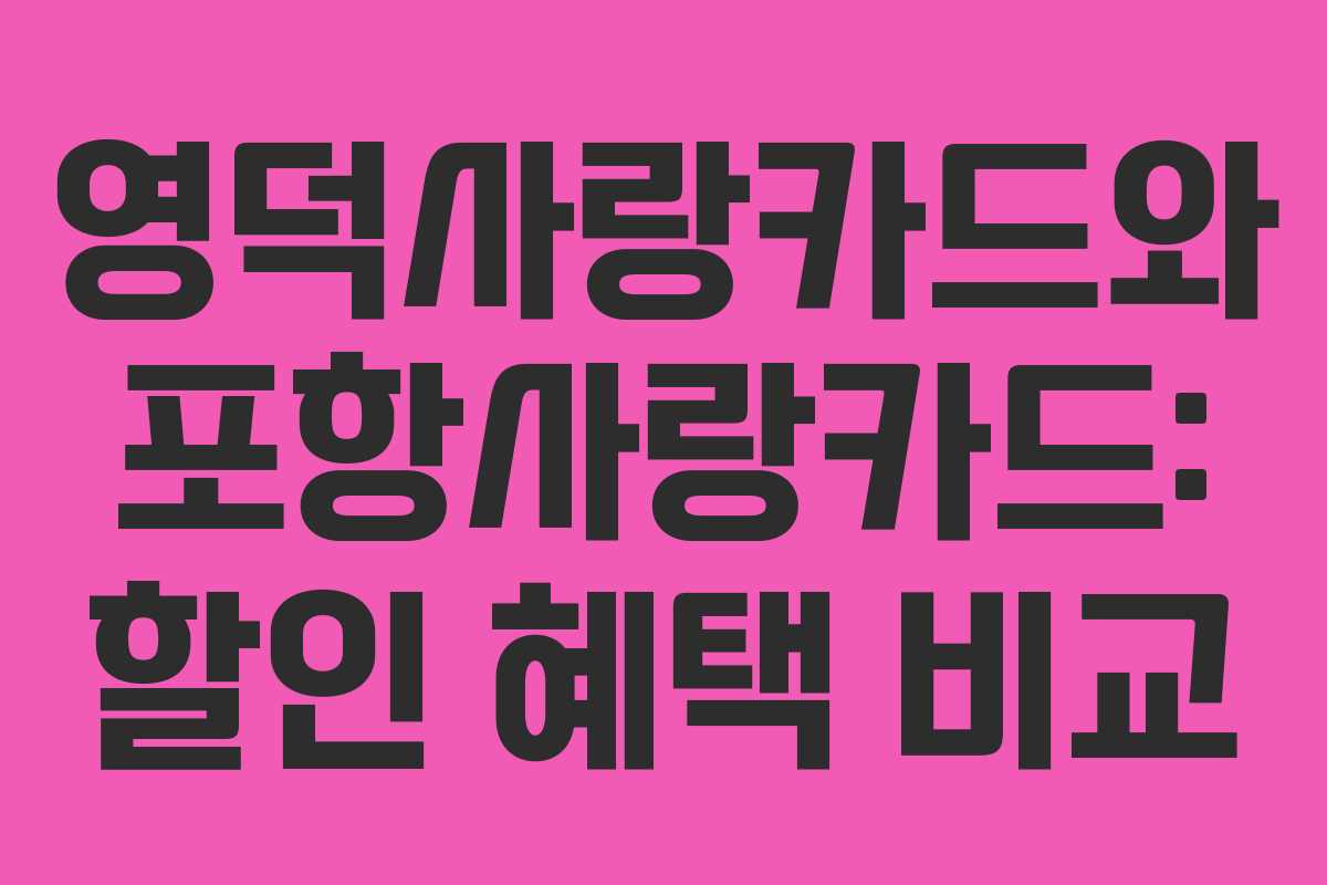 최근 영덕과 포항 지역에서 제공하는 사랑카드에 대한 관심이 높아지고 있습니다. 이 카드들은 지역 경제 활성화와 소비자 혜택을 동시에 겨냥하고 있습니다. 이번 글에서는 영덕사랑카드와 포항사랑카드의 특징과 할인 혜택을 비교해 보겠습니다.