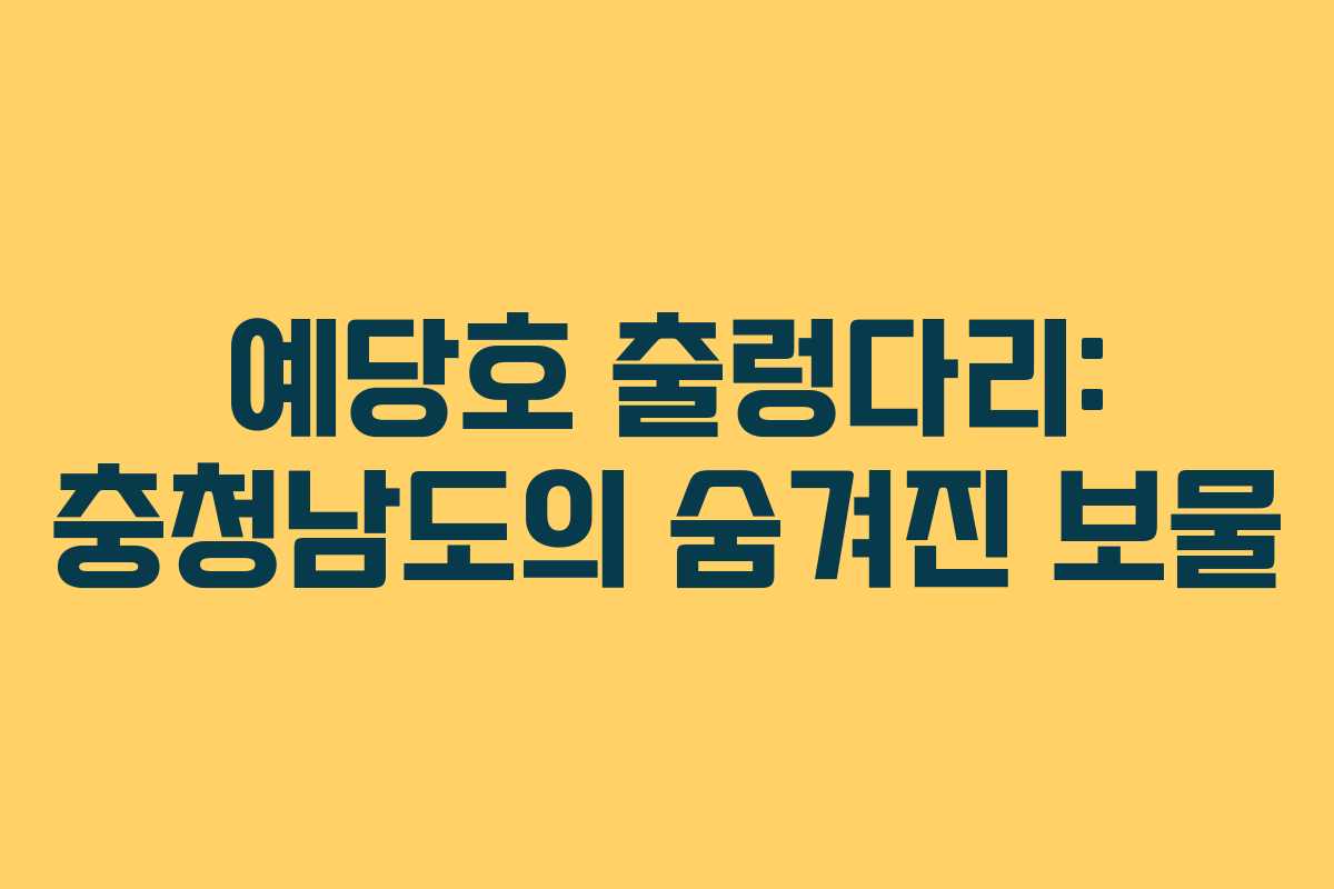 예당호 출렁다리는 충청남도 예산군에 위치한 국내 최장 출렁다리로, 아름다운 자연 경관과 함께 다양한 즐길 거리를 제공합니다. 이번 글에서는 예당호와 출렁다리에 대해 자세히 알아보겠습니다.