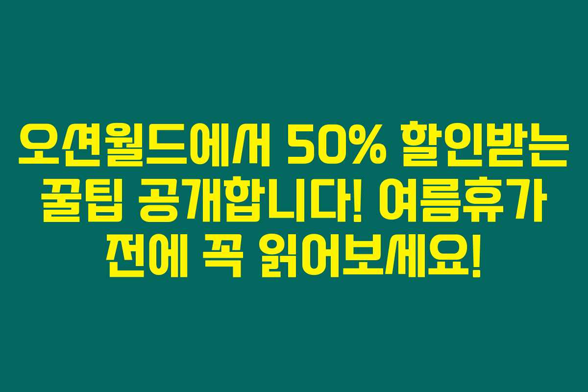 오션월드에서 여름의 시원함을 즐기고 싶으신가요? 하지만 불어난 입장료가 걱정된다면 주목하세요! 오션월드에서는 누구나 쉽게 50%를 할인 받을 수 있는 다양한 방법이 존재해요. 특히 7월과 8월에 할인을 극대화할 수 있는 전략을 소개해드릴게요. 아래를 읽어보시면 알찬 할인 방법을 확인할 수 있습니다.